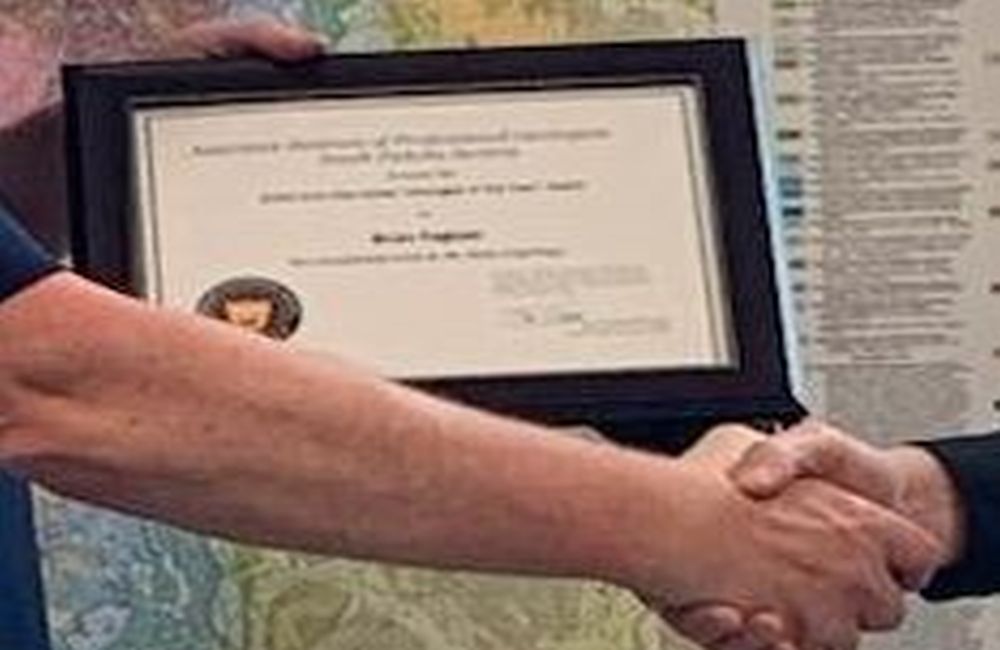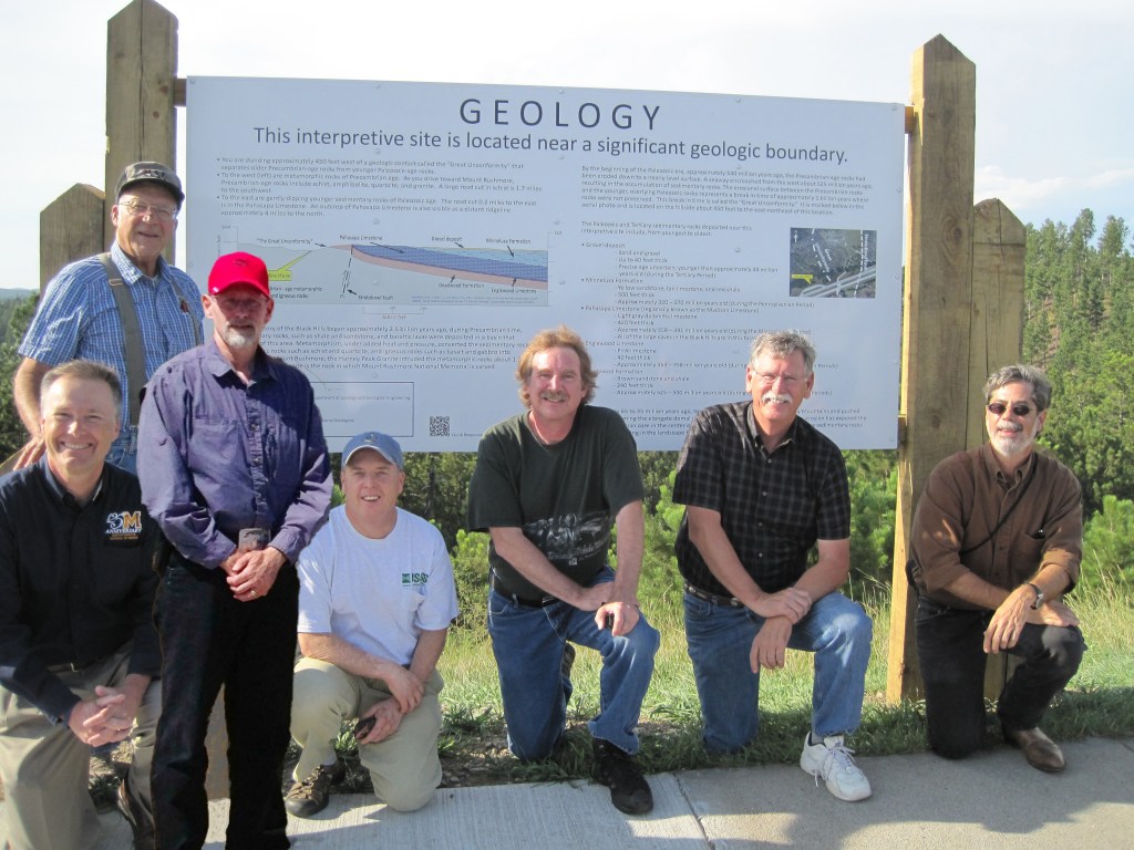 Representative of seven organizations collaborated in erecting a geologic interpretive sign along highway 16 in the Black Hills of South Dakota.