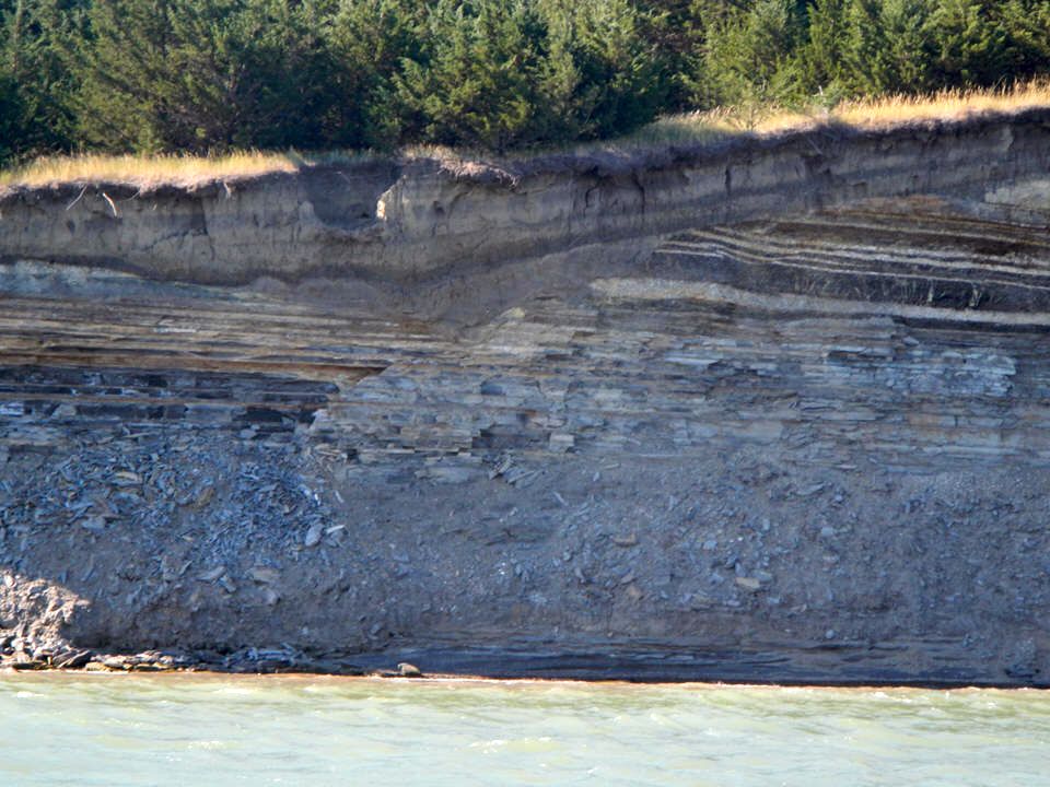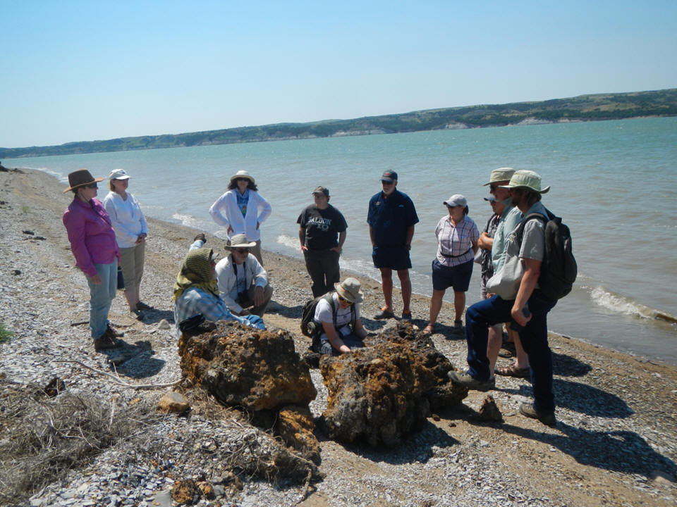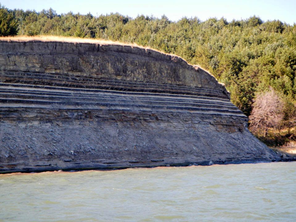 The trip focused on the outcrops along the shores of the Missouri River in the Lewis and Clark Lake. This Reservoir is located above Gavin’s Point Dam. This field trip is boat-based and designed with at starting point at the Gavin’s Point boat ramp.