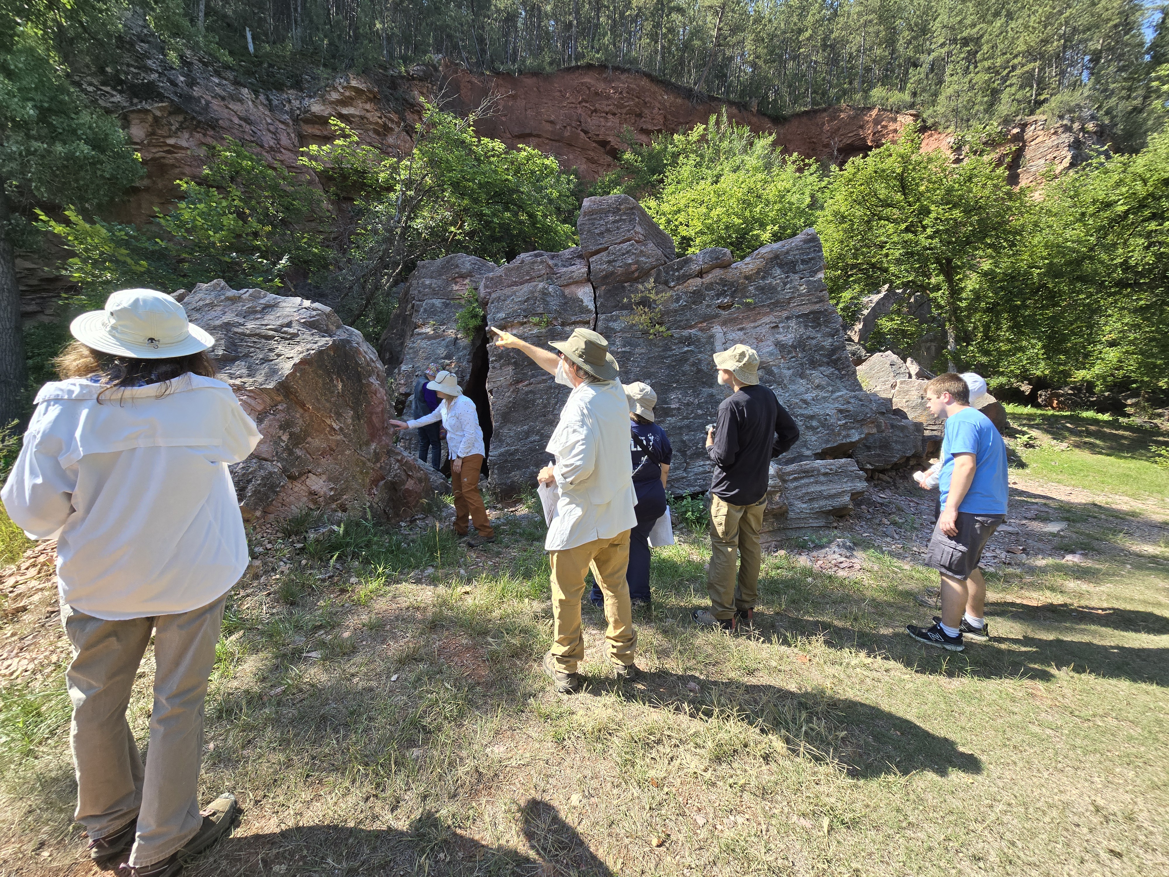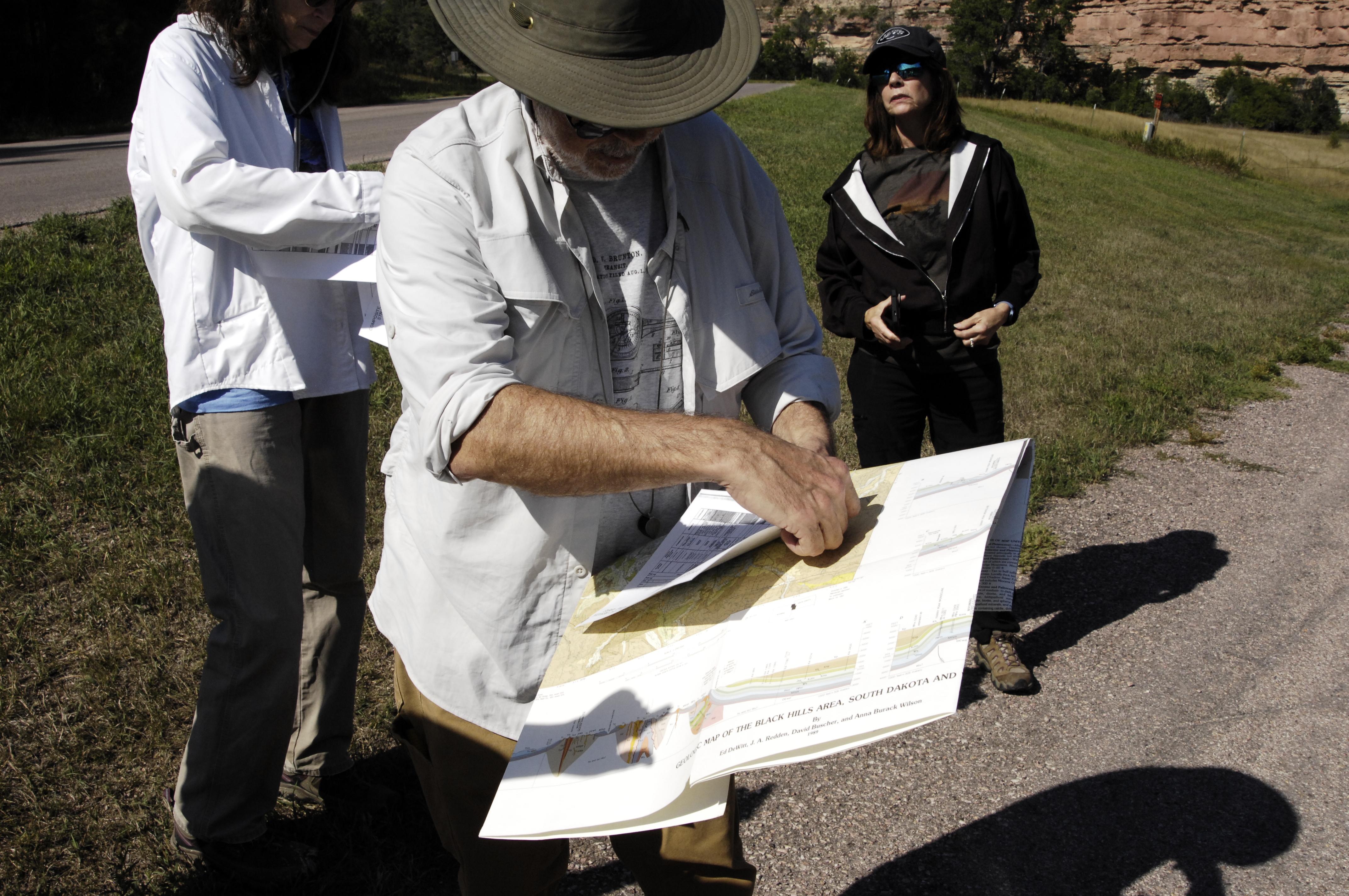 The field trip was led by Dr. J. Foster Sawyer, geologist and Faculty/Research Scientist at Oglala Lakota College. The trip included an in-depth look at classic exposures of Paleozoic and Mesozoic strata in the southern Black Hills of South Dakota.