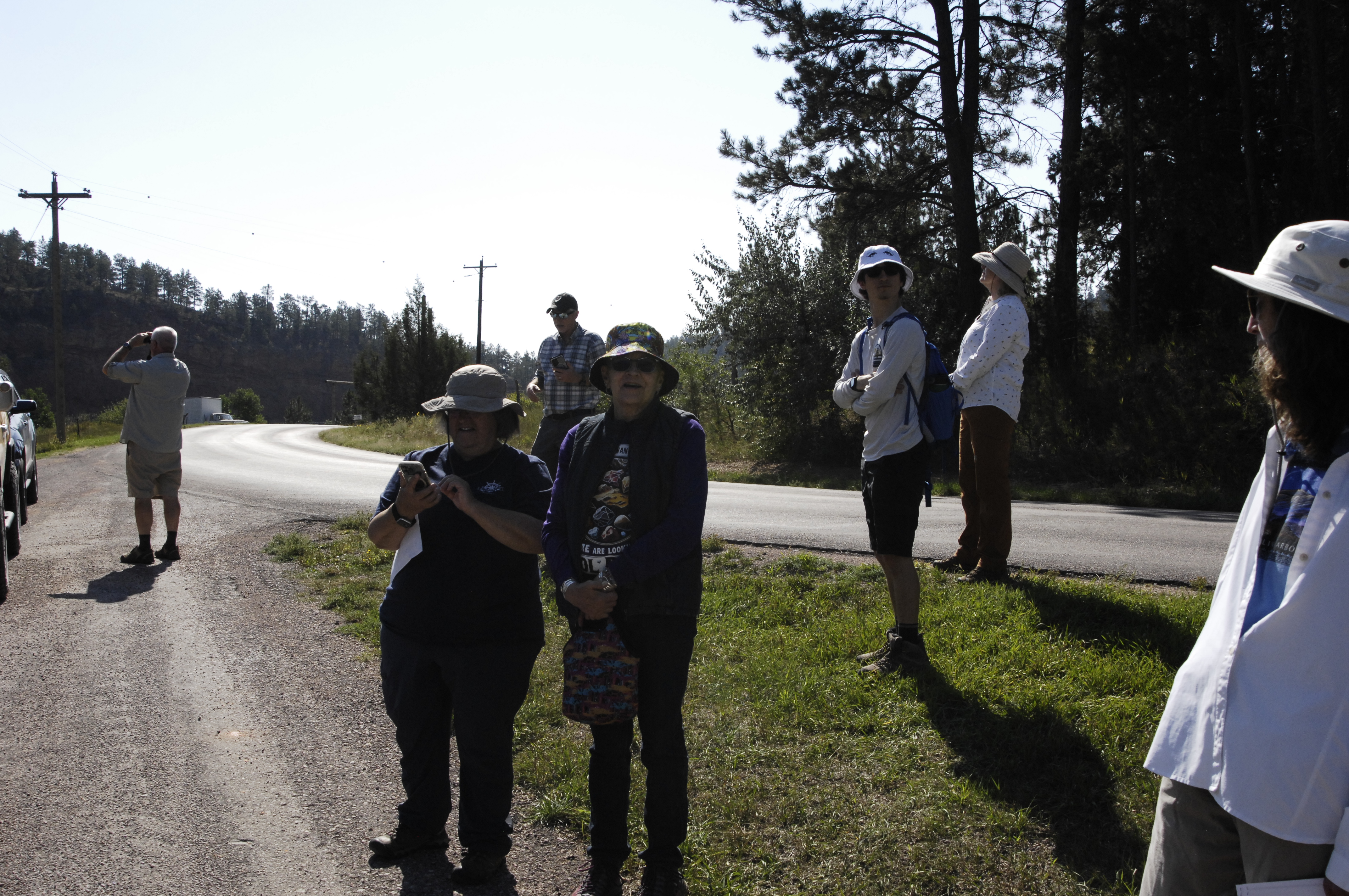 Fifteen members and friends of SDAIPG toured Badlands National Park. The weather was perfect and the scenery spectacular. Dr. Mark Fahrenbach of the SD Geological Survey guided the group on several stops that focused on the unique geology and paleontology of The Badlands. Recent landslide areas, the fossil exhibit trail, the Acheotherium excavation site (i.e., “Pig Dig”), Sheep Mt. Table, Pinnacles Overlook, and several other locations were visited. Robin Barber was the winner of the drawing for the Estwing Rock Hammer. After the geology tour was over, most of the group continued to Quinn, SD where Ron Dyvig, President of Badlands Observatory showed us the large Newtonian telescope and observatory that he constructed for astonomical research and education. The evening was topped off by a sighting of the International Space Station as it orbited overhead. Thanks to Tom Durkin for organizing it!