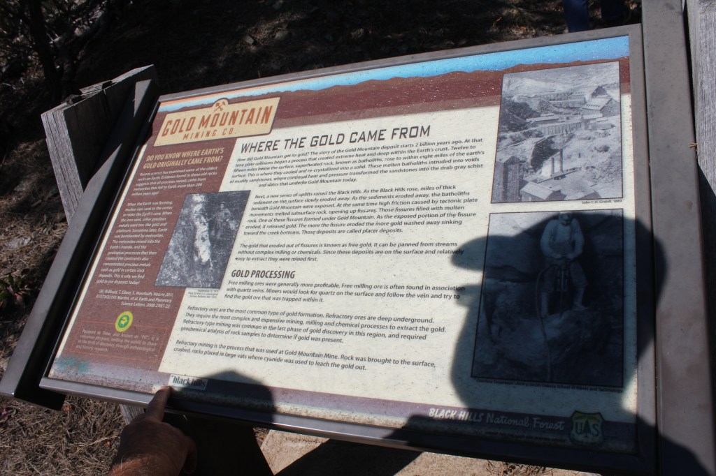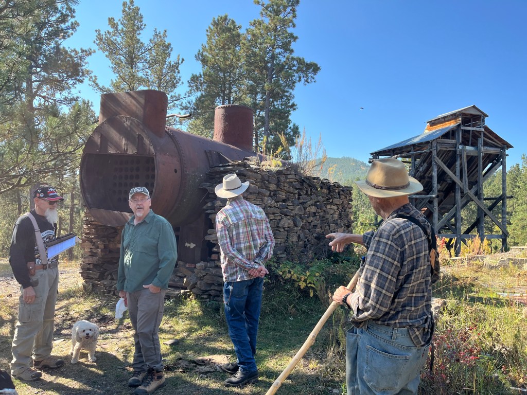 The field trip was led by Dr. Perry Rahn, geologist and Professor Emeritus at South Dakota School of Mines and Technology. The trip included a discussion of the history of the mine including the structures still present, the fact that little historical gold production occurred at the site, and the observation that one of the interpretive signs includes a poorly worded and arguably incorrect reference to meteor impacts as the reason for the presence of gold in the rock. At the conclusion of the field trip, Dr. Rahn, a member of AIPG since 1977, was presented a “Lifetime Achievement Award” by the South Dakota Section for his many contributions to the organization and to the fields of geology and geological engineering. Dr. Rahn’s nomination letter for this award was written by 2024-25 SD Section President Dr. J. Foster Sawyer.